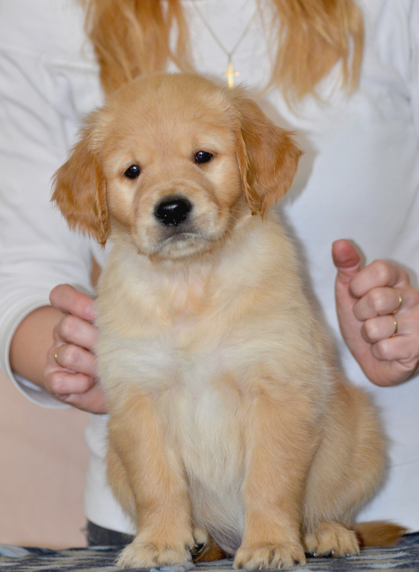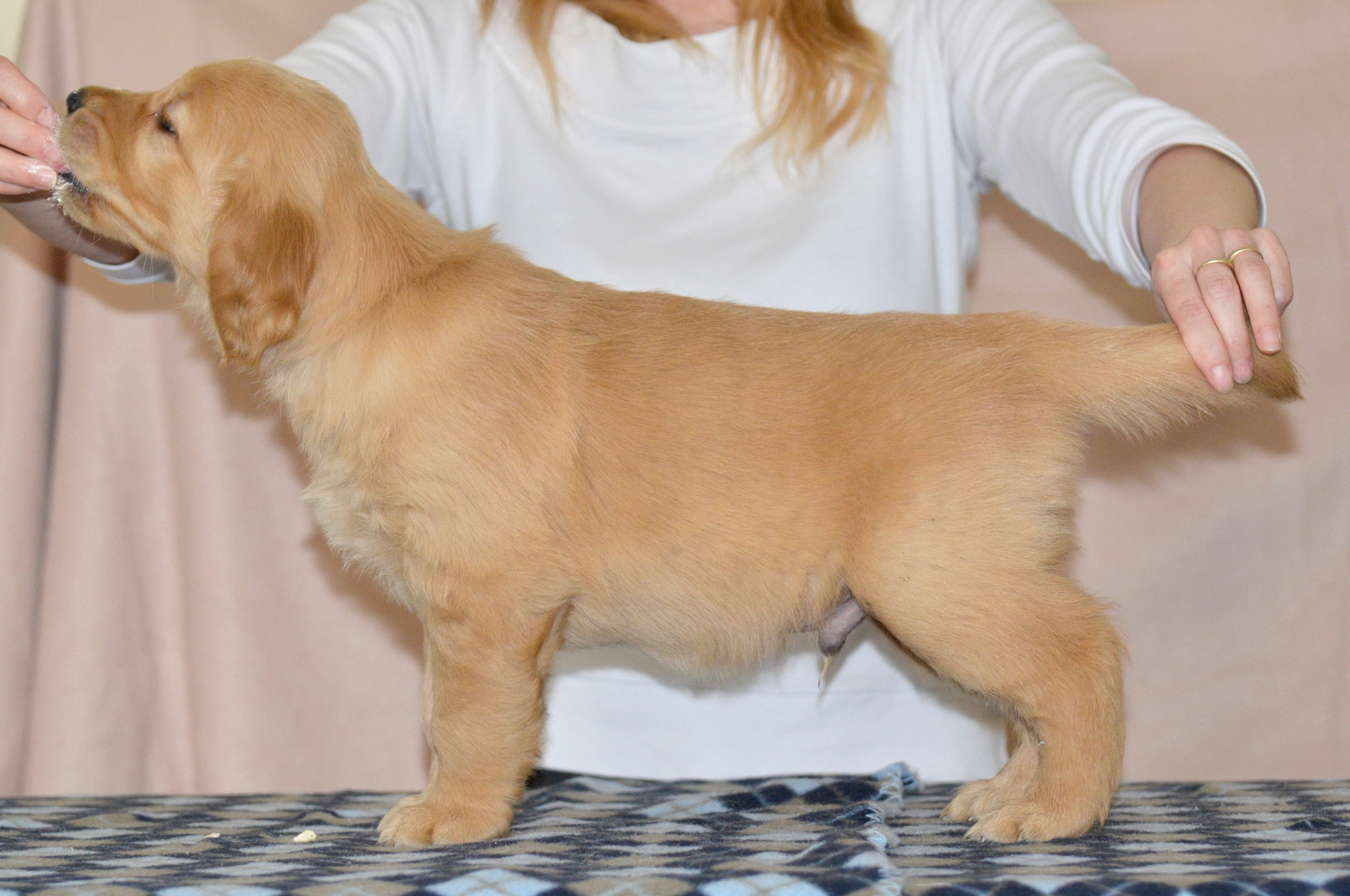 Štěňátkům je už týden a mají se čile k světu. Mají za sebou první stříhání drápků. Barvičky kožíšků budou od zlaté až po sytě zlatou barvu. Volný už pouze jeden klučík.